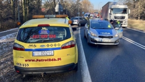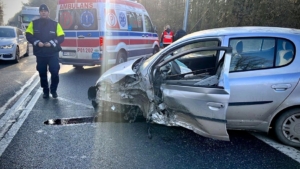 Uwaga kierowcy! Częściowo zablokowana jest DK12 w m. Gołuchów w powiecie pleszewskim. Czołowo-boczne zderzenie dwóch samochodów osobowych. Dwie osoby są poszkodowane i trafiły do szpitala.