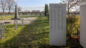 Rewaloryzacja zabytkowej nekropolii wojskowej. Przywrócono przedwojenny wygląd obelisku, zrekonstruowano układ kwater, wykonano nowe krzyże wkomponowane w stalowe ramy i umieszczono tablice pamiątkowe w dwóch językach. Zadbano o właściwe uczytelnienie przestrzeni i jej otwarcie na historyczne granice cmentarza.