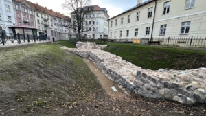 Prace konserwatorskie i terenowe wokół fragmentów średniowiecznych murów. Usunięto betonowe nadbudowy, wykonano renowację struktury, uporządkowano teren, zamontowano makiety i tablice informacyjne oraz wykonano iluminację murów. Celem było podkreślenie wartości historycznej miejsca i uczytelnienie jego formy dla odwiedzających.