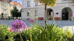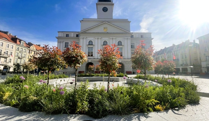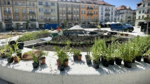 Prace wykonane jako podwykonawca w ramach rewitalizacji centrum miasta. Zakres obejmował montaż systemu nawadniania, sadzenie drzew i krzewów w ścisłej zabudowie staromiejskiej, prace elektryczne oraz instalację elementów małej architektury. Całość prowadzona była w trudnych warunkach inwestycji miejskiej z zachowaniem pełnej logistyki.