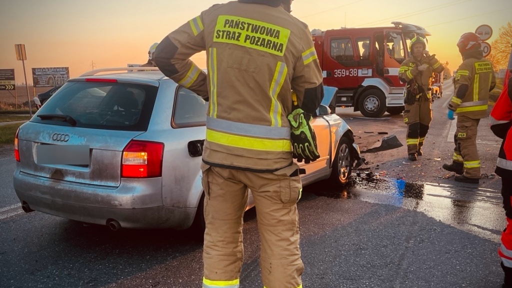 Groźne zderzenie na wojewódzkiej „470” pod Kaliszem. Droga częściowo zablokowana [FOTO]