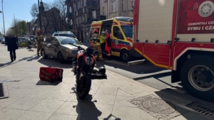 W piątek, 17 kwietnia około godziny 16:00 na ul. Śródmiejskiej w Kaliszu motocyklista uderzył w tył poprzedzającego go pojazdu. Zgłoszenie tego incydentu pod numer alarmowy 112 skutkowało interwencją dwóch zastępów z Jednostki Ratowniczo-Gaśniczej nr 1 KM Państwowej Straży Pożarnej w Kaliszu, Zespołu Ratownictwa Medycznego oraz Policji.