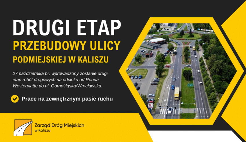- Wyłączony zostanie z ruchu kołowego pierwszy zjazd od strony Ronda Westerplatte prowadzący do sklepu Kaufland, stacji diagnostycznych oraz stacji paliw, a także zamknięty zostanie wyjazd z parkingu sklepu Kaufland (trzeci zjazd od strony Ronda Westerplatte). Zjazdy te zostaną przywrócone dla ruchu kołowego niezwłocznie po zakończeniu ich przebudowy.