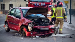 W środę, 8 kwietnia br. około godziny 18:30 na skrzyżowaniu ul. Sukienniczej i Kazimierzowskiej w Kaliszu doszło do wypadku drogowego, w którym poszkodowana została młoda kobieta. Sprawca zdarzenia – kierujący srebrnym Hyundai’em nie ustąpił pierwszeństwa przejazdu kierującej Citroenem. Do działań ratowniczych zadysponowano dwa zastępy z Jednostki Ratowniczo-Gaśniczej nr 1 KM Państwowej Straży Pożarnej w Kaliszu, Zespół Ratownictwa Medycznego oraz Policję.