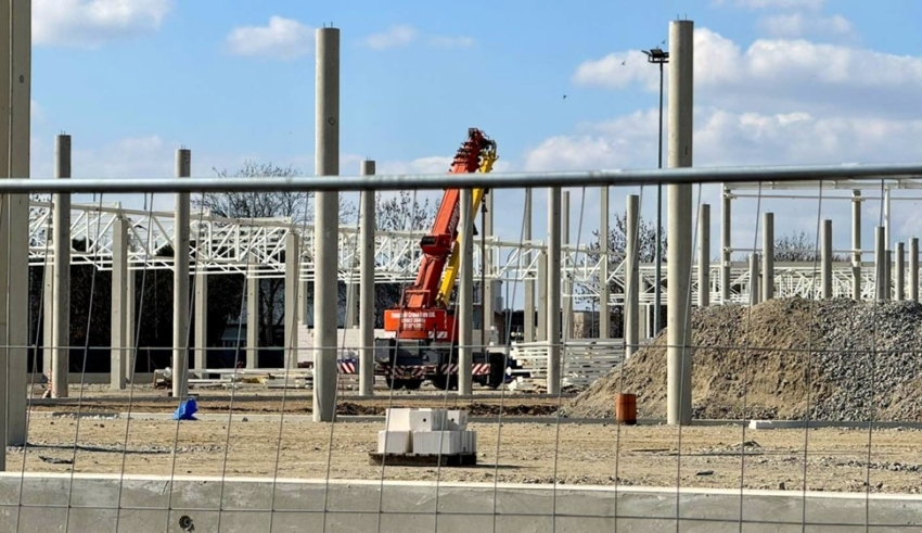 Najbardziej charakterystycznym elementem obecnego etapu są rzędy wysokich żelbetowych kolumn, które z daleka wyznaczają kształt przyszłej galerii. Filarowa konstrukcja ustawiona została w układzie przypominającym literę „L” i stanowi podstawę pod docelową bryłę obiektu. To właśnie na niej powstanie nowoczesny park handlowy.