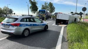 Poważny wypadek na krajowej „12” w powiecie pleszewskim! W zderzeniu busa z autem ciężarowym ranne zostały dwie osoby. Pojazd przewrócił się na bok. Droga jest zablokowana.