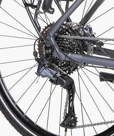 Stosowane podzespoły należą zwykle do sprawdzonych, trwałych grup. Z przodu najczęściej znajdziesz dwie lub trzy tarcze, a z tyłu od 7 do nawet 11 przełożeń. Tańsze rowery wykorzystują grupy Shimano Acera lub Altus – to komponenty typu entry-level, łączące przyzwoitą kulturę pracy z prostotą serwisu. W droższych modelach znajdziesz grupy Alivio, Deore, a nawet nowoczesne Shimano Cues (w tym wersje sterowane elektronicznie Di2 jak w przypadku Unibike Freeway).