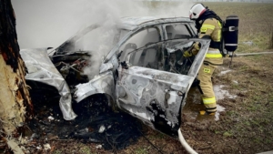 • Na miejscu zdarzenia trwa akcja gaśnicza. Pojazd, który uderzył w drzewo to samochód elektryczny. Niestety jedna osoba poniosła śmierć na miejscu – przekazuje portalowi Kalisz24 INFO bryg. mgr Roland Egiert, Komendant KP Państwowej Straży Pożarnej w Pleszewie.