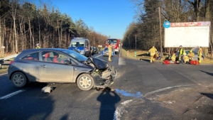 Do tego groźnie wyglądającego zdarzenia doszło w piątek, 19 grudnia około godziny 12.40, w czasie kiedy miejsce poprzedniego wypadku drogowego opuszczały służby ratunkowe. Kiedy funkcjonariusze Wydziału Ruchu Drogowego mieli już przywracać normalny ruch, policjant kierujący ruchem został potrącony przez uderzony w tył samochód osobowy.