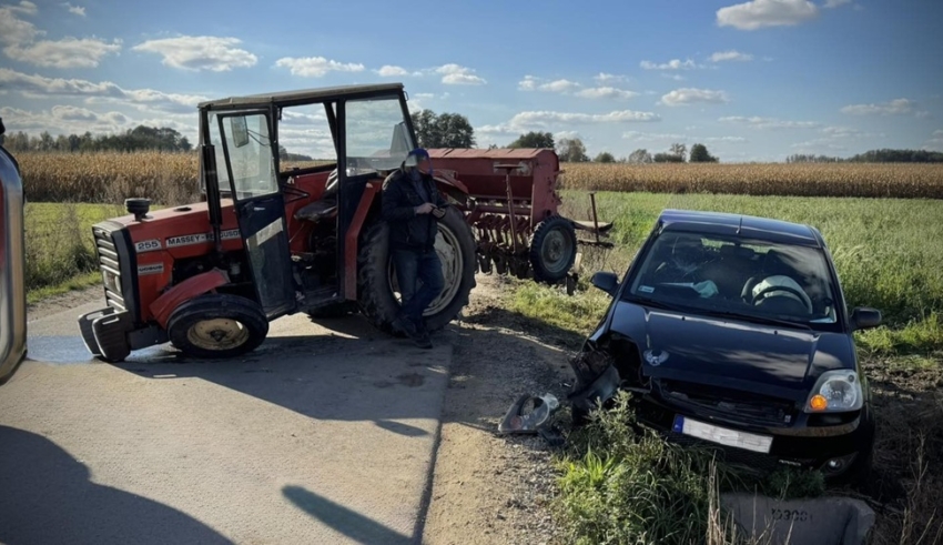 Zablokowana jest droga Kosmów – Kosmów-Kolonia w gm. Ceków. To po zderzeniu auta osobowego z ciągnikiem rolniczym. Na miejscu pracuje straż pożarna i policja. Na szczęście nikomu nic się nie stało.